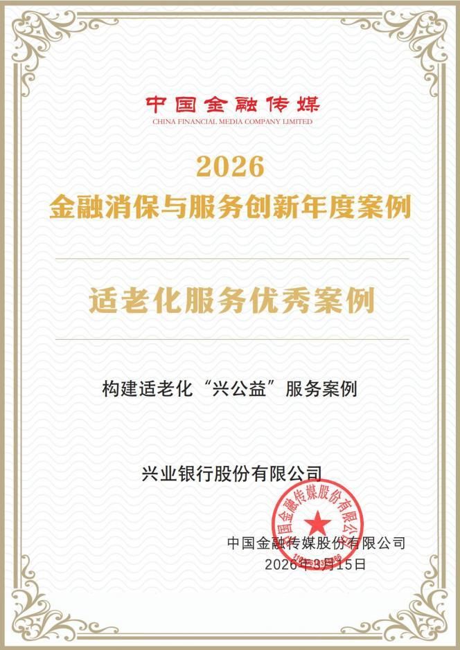 興業(yè)銀行榮獲中國金融傳媒 “2026金融消保與服務(wù)創(chuàng)新優(yōu)秀案例獎”