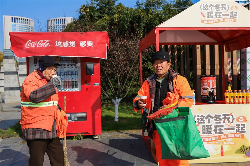 他們溫暖城市,我們溫暖他們。造型裝飾以暖色系為主的“可口可樂(lè)暖心小站”,通過(guò)精心裝扮,營(yíng)造出一種柔和溫暖的氛圍。小站不僅為戶(hù)外工作者們準(zhǔn)備了特制的城市版“溫暖包”,同時(shí)提供熱飲補(bǔ)給,為過(guò)往的戶(hù)外工作者驅(qū)散寒意,每一杯熱飲都像是冬日里的一縷陽(yáng)光,溫暖著他們的心田。