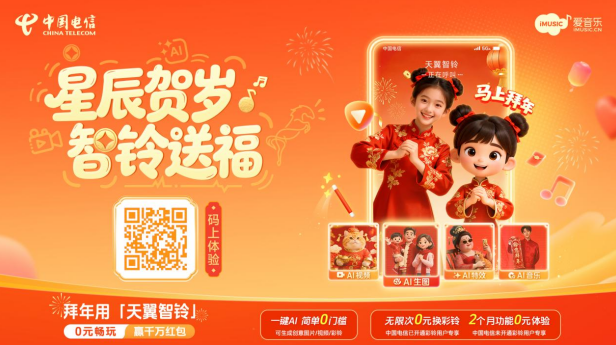 天翼智鈴體驗區(qū)吸引了往來乘客,大家紛紛駐足,掏出手機(jī)掃碼互動,體驗僅用一張照片、一句祝福語,就能讓自己或家人成為馬年賀歲主角。AI文生視頻、AI圖生視頻,一鍵切換場景,海量模板可供選擇,一鍵生成個性化拜年視頻,無論是期盼“馬上有錢”,還是祝愿“龍馬精神”,簡單操作便能生成融匯國潮元素的創(chuàng)意開運(yùn)視頻,同時還能設(shè)置成專屬的來電彩鈴,讓遠(yuǎn)方的牽掛通過科技傳遞,讓新春祝福更具儀式感。